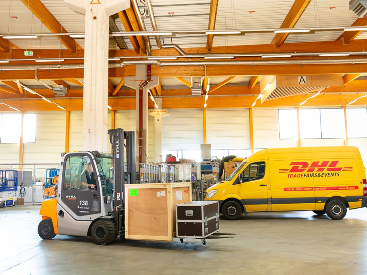 Ob Sie ein komplettes Messegelände mit Gabelstaplern und Personal ausstatten müssen, um alle eingehenden Materialien zu organisieren, oder ob Sie Ihre Exponate nach Übersee senden müssen, um Ihr Produkt auf dem Markt zu präsentieren – DHL ist einer der führenden Experten für Messelogistik, und das seit 1926. Wir organisieren die gesamte Transportkette einschließlich der Zollformalitäten und anderer notwendiger Dokumente.