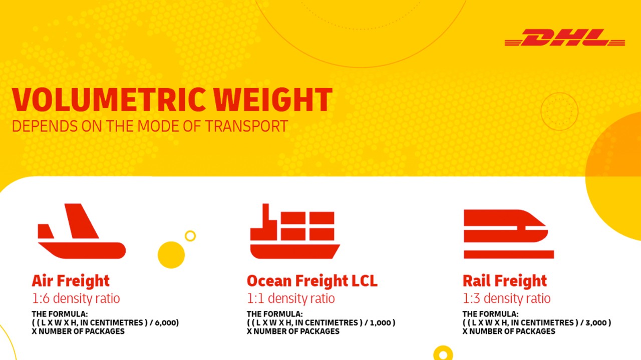 If your cargo contains large machinery parts, it will be heavy but dense. The actual weight will probably be greater than the volumetric weight. And if your cargo contains individual plastic components within protective polystyrene packaging, it will be light but take up a relatively large amount of space. The volumetric weight may be greater than the actual weight.