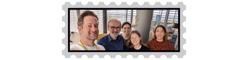 Das Deutsche Post Grafik Team (v.l.): Jan-Niklas Kröger, Thomas Steinacker, Bettina Walter, Chayenn Gutowski und Jennifer Dengler