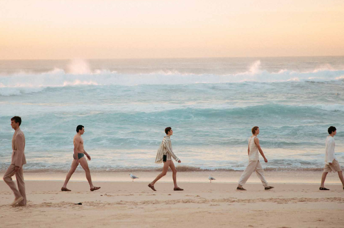 The crowd takes their seats and it’s time for the show to commence. Descending the stairs to the beach, the models begin to walk one-by-one along the water’s edge.