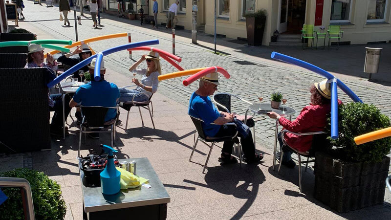 As restaurants around the world begin to open up again, there’s a different feel to the surroundings – but how are eateries tackling the issues that social distancing rules create? Creatively, is the answer. Mediamatic ETEN4, a restaurant in Amsterdam, is trailing the use of outdoor greenhouses as a solution, while Bord för En5 in Sweden is taking a more radical approach, allowing just one customer to dine at a time, with meals delivered via a basket on a washing line - whilst German eaterie Rothe6 has taken the prize for the most share-worthy solution with their socially-distanced headgear.