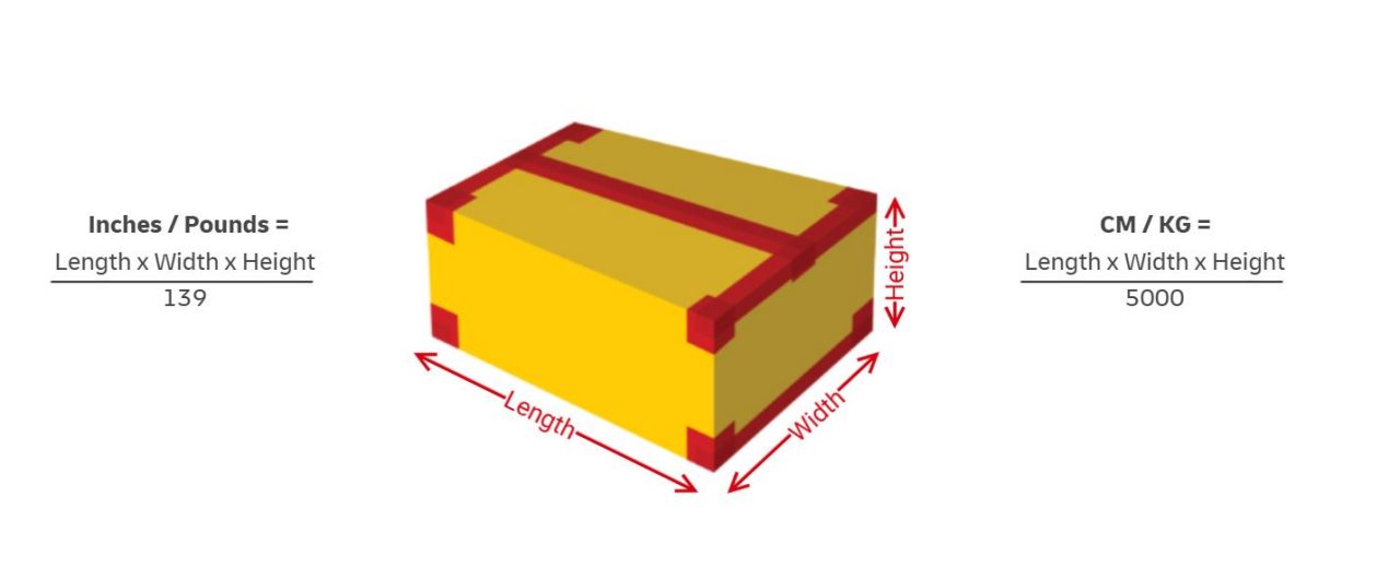 The cost of a shipment can be affected by the amount of space that it occupies on an aircraft, rather than its actual weight. This is the volumetric (or dimensional) weight. The volumetric weight of a shipment is a calculation that reflects the density of a package. A less dense item occupies more space in relation to its actual weight. The volumetric weight is calculated and compared with the actual weight of the shipment to determine which is greater. Then the higher weight is used to calculate the shipment cost. The volumetric divisor is 139 for inches/pounds or 5,000 for centimeters/kilograms.