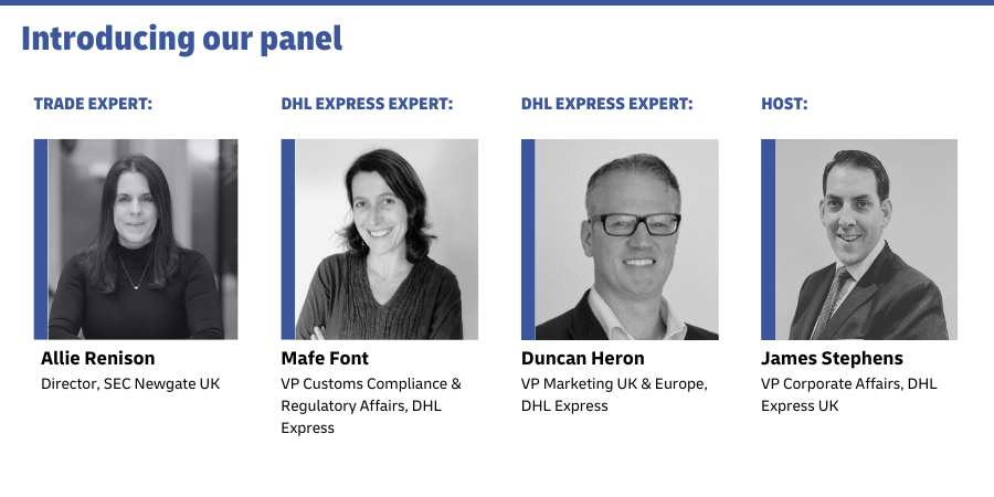 At DHL Express, we’re ambitious for your business. We believe that the government’s series of trade agreements is an opportunity to energise the UK’s trading power and reach fresh markets around the world. Through a series of webinars and summary guides we want to help your business make the most of these international opportunities.