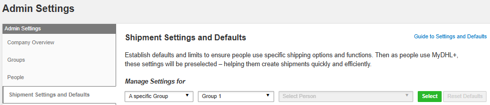 Select the Group or Person you wish to configure for at the top in Manage Settings For