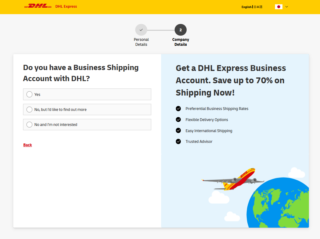 Tell us whether you have a DHL account number.