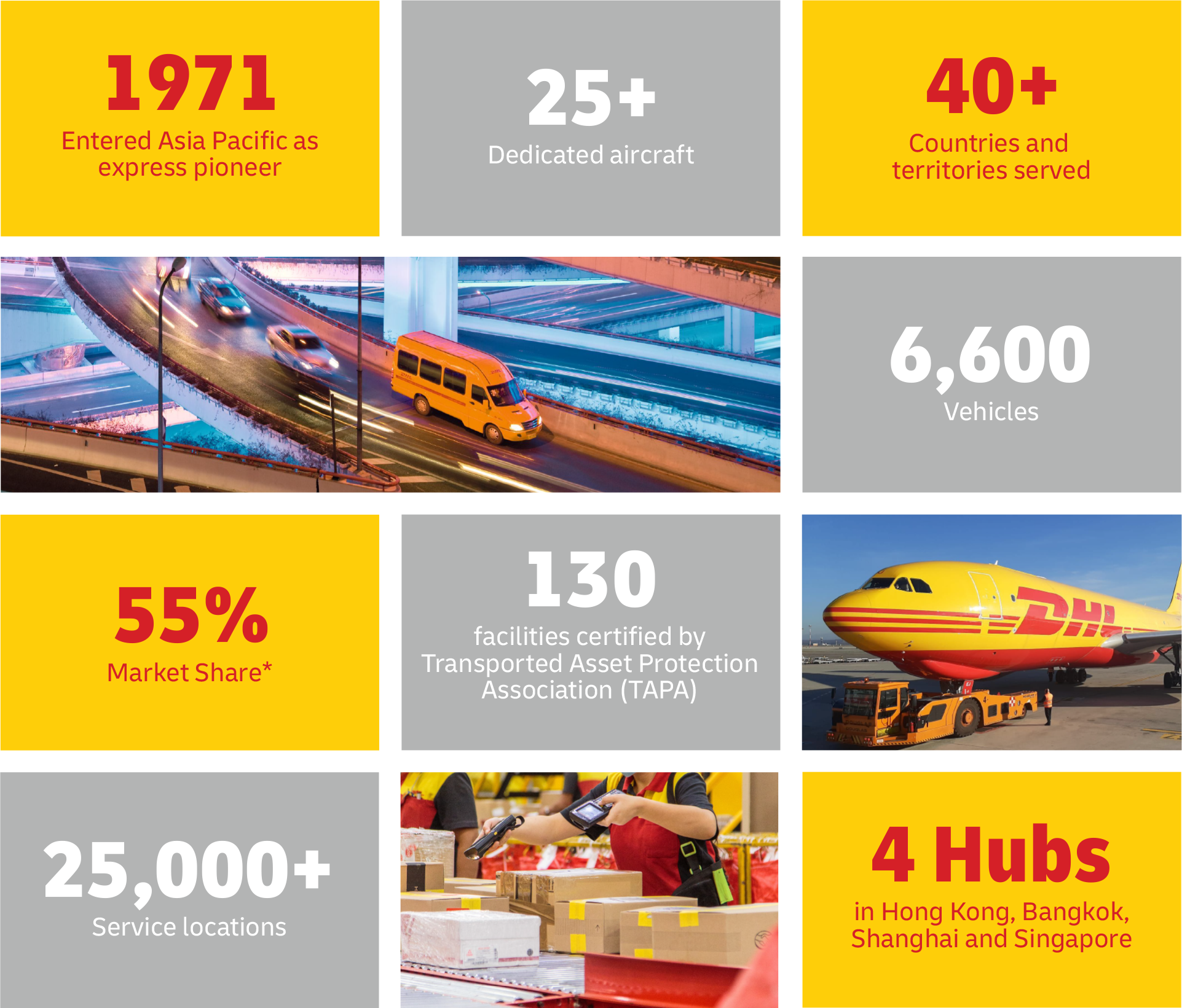 DHL Express has the largest international air express market share in Asia Pacific: 55%