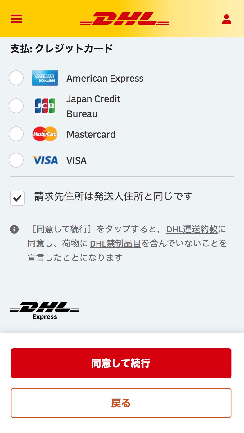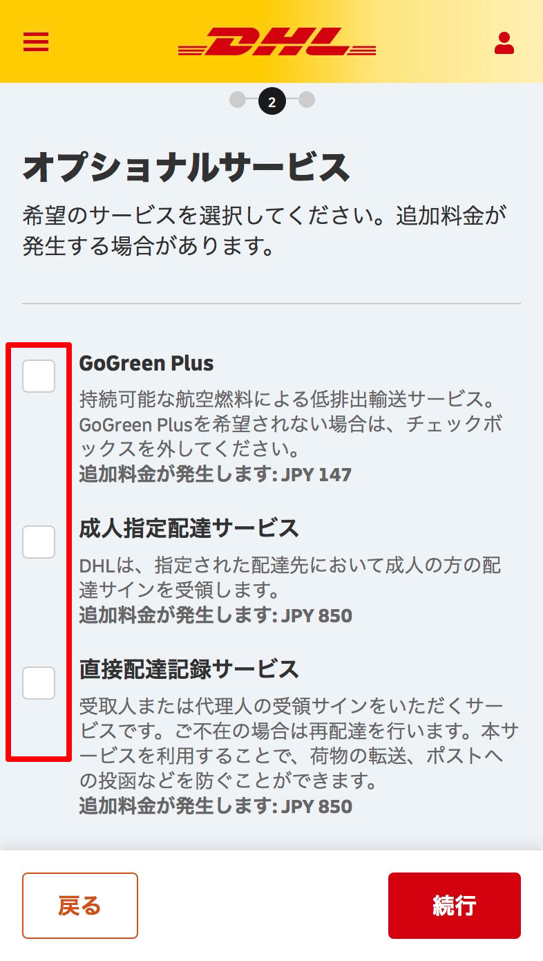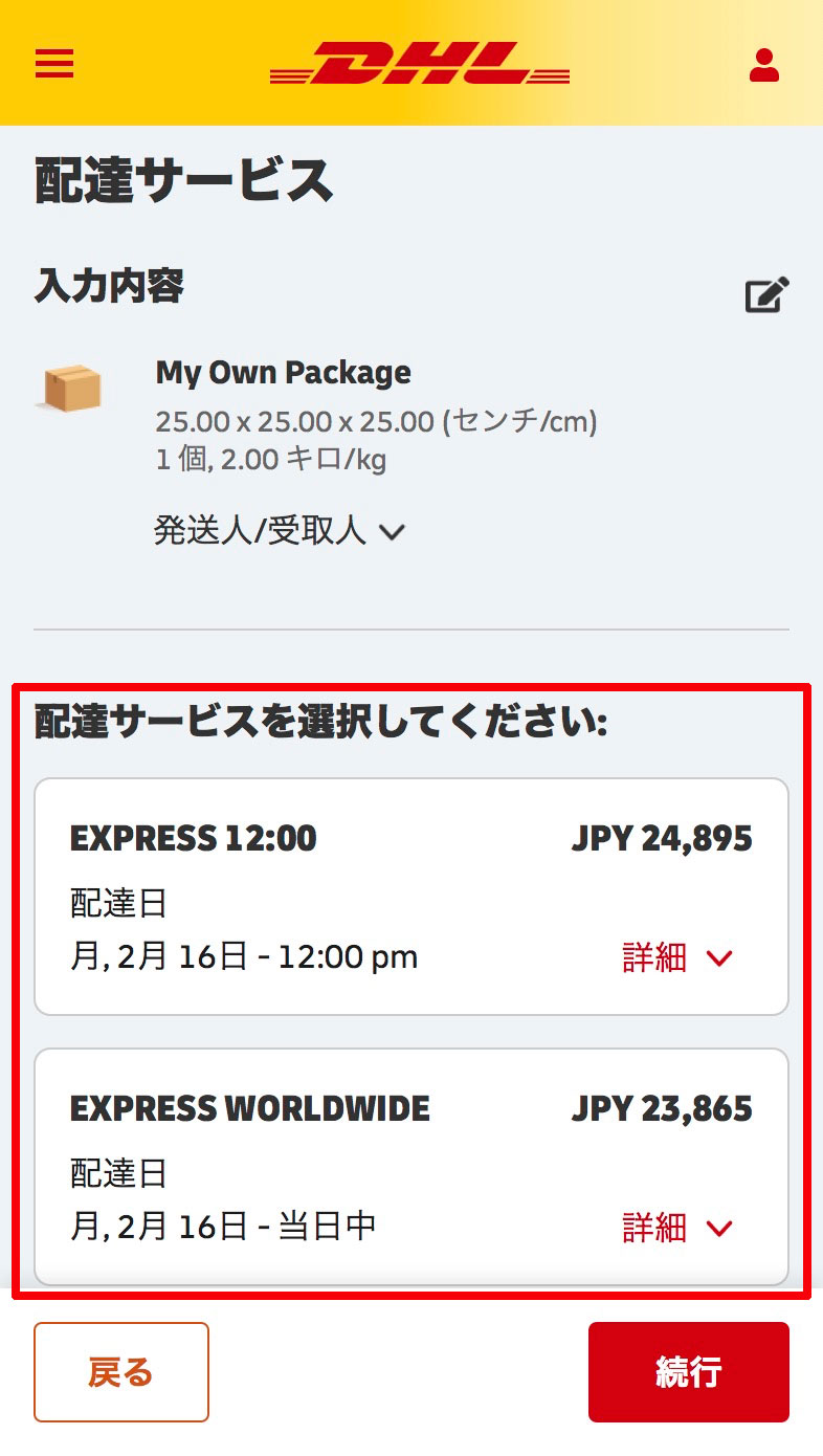 表⽰されたDHLの配達サービスを選択します。
