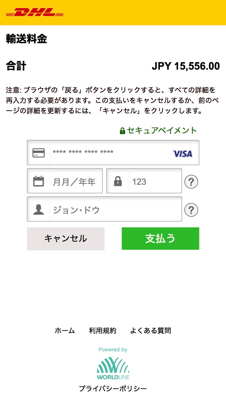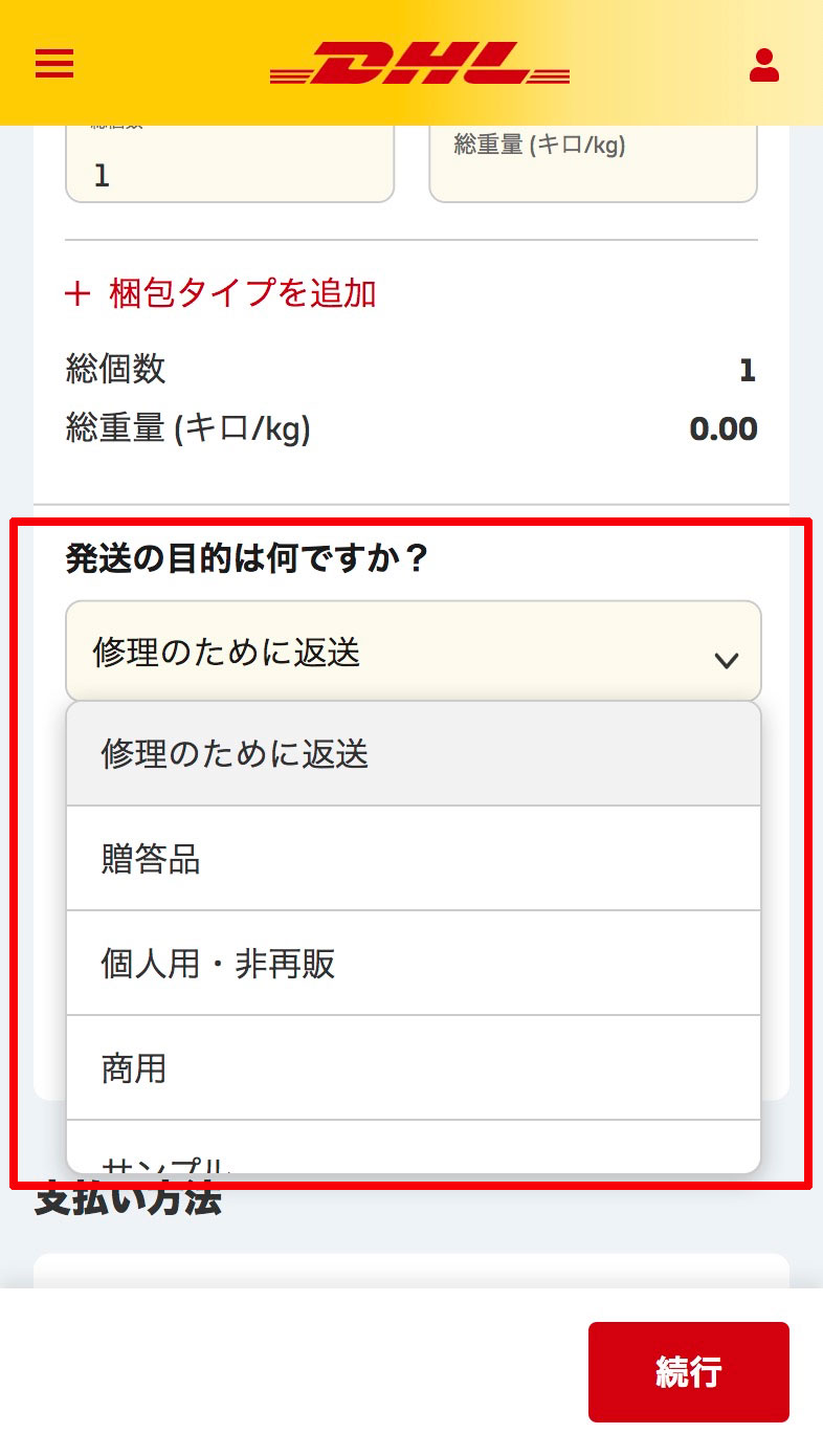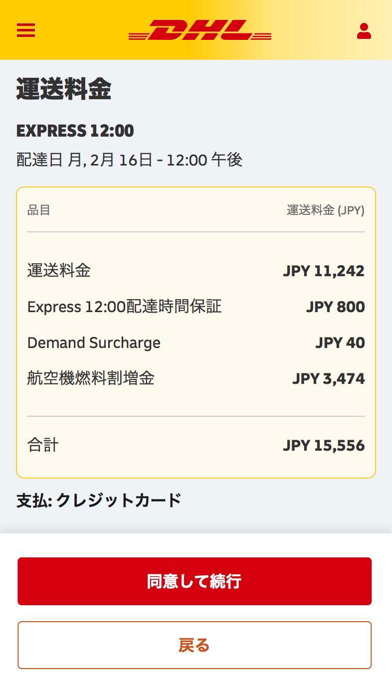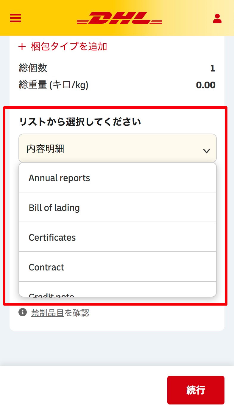 表⽰されたDHLの配達サービスを選択します。