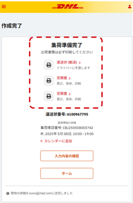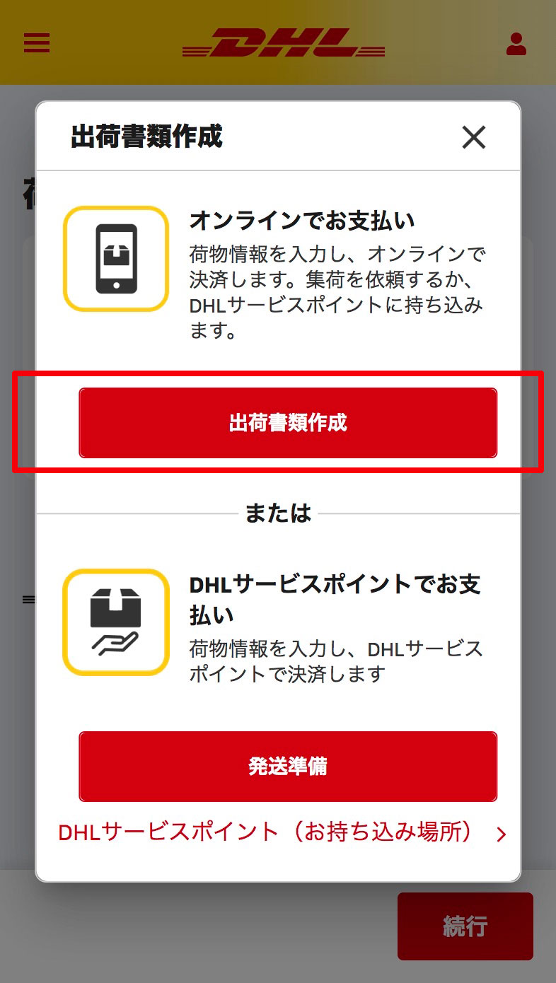 荷物を集荷して発送、またはDHLサービスポイントへ持込んで発送することができます。
