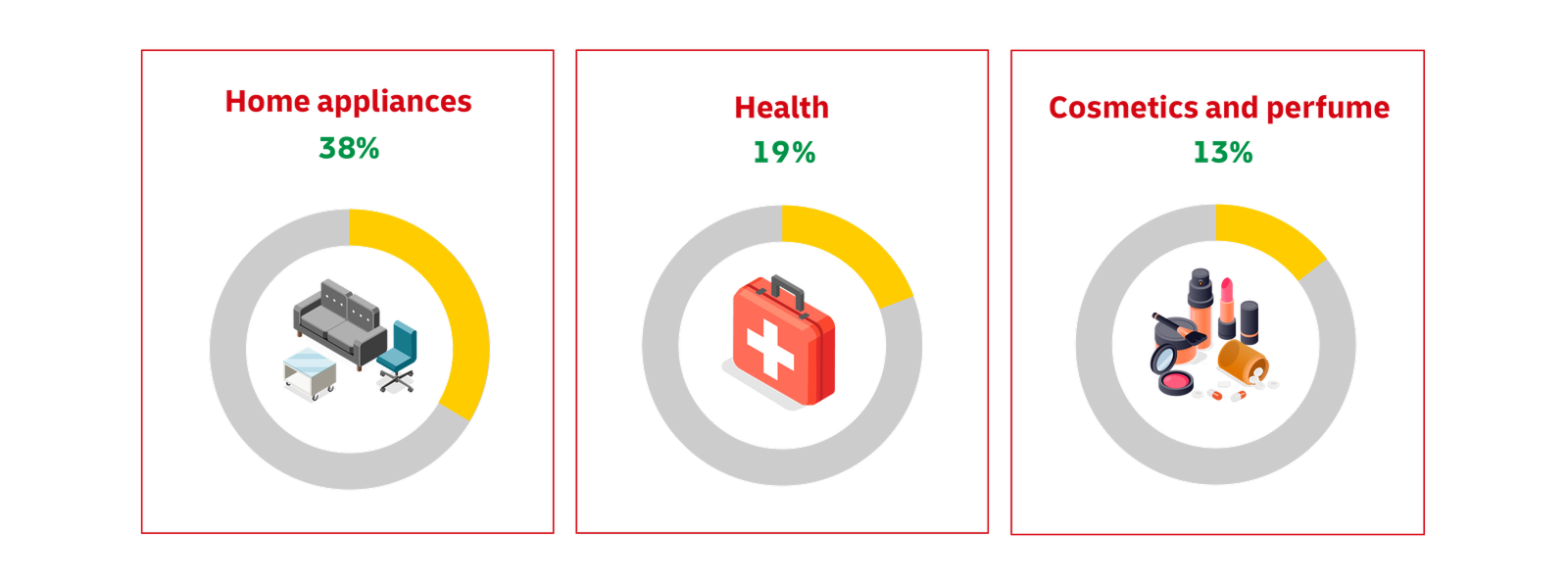 브라질 온라인 시장에서는 가전제품 카테고리가 가장 높은 판매 비중을 차지하고 있습니다. 냉장고, 세탁기, 전자레인지, 에어컨 등 생활 필수 가전뿐만 아니라, 스마트홈 기기와 소형가전의 수요도 꾸준히 증가하고 있습니다. 이와 더불어 건강·헬스케어 제품(Health), 화장품 및 향수(Cosmetics & Perfume) 역시 소비자 선호도가 높아 지속적인 판매 성장세를 보이고 있습니다.