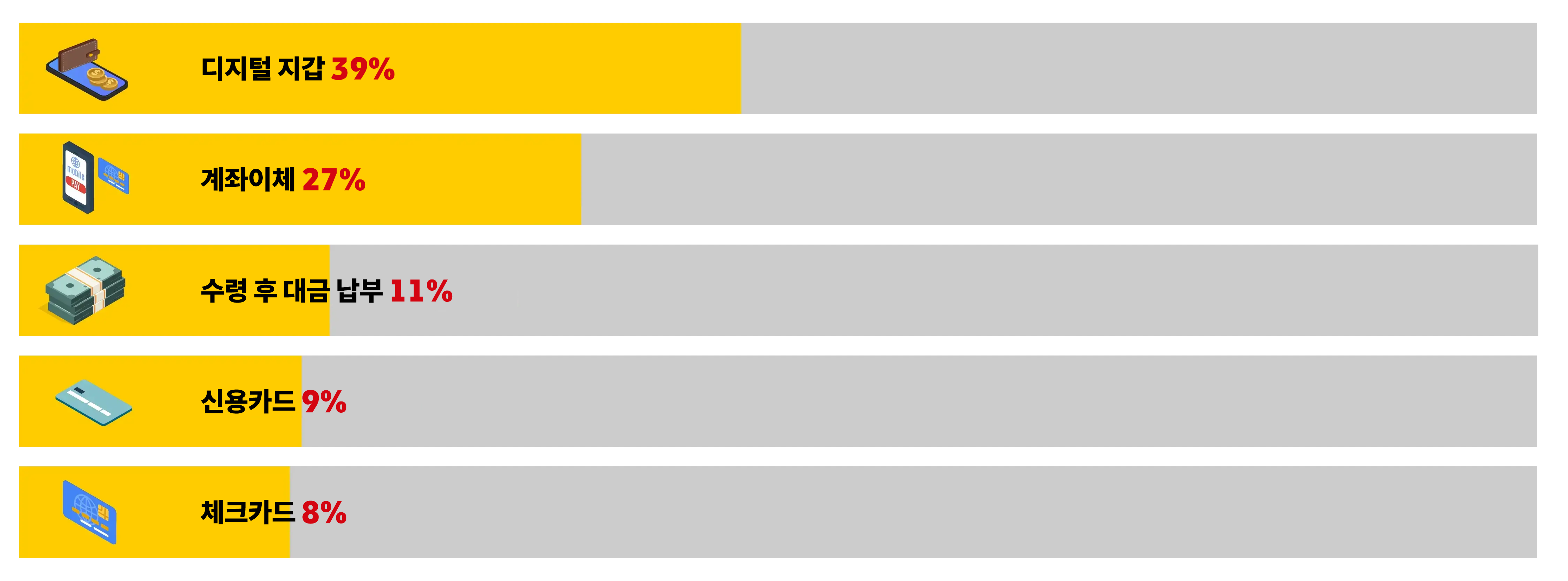 인도네시아 소비자들이 선호하는 온라인 결제 수단은 디지털 지갑입니다. GoPay, OVO, DANA 등의 디지털 결제가 인기를 끌고 있습니다. 하나 주목할 점은 여전히 COD(Cash on Delivery) 결제 시스템이 널리 이용된다는 점입니다. 해당 결제 시스템은 말 그대로 소비자가 온라인에서 주문한 상품을 수령 후 대금을 납부하는 시스템입니다.