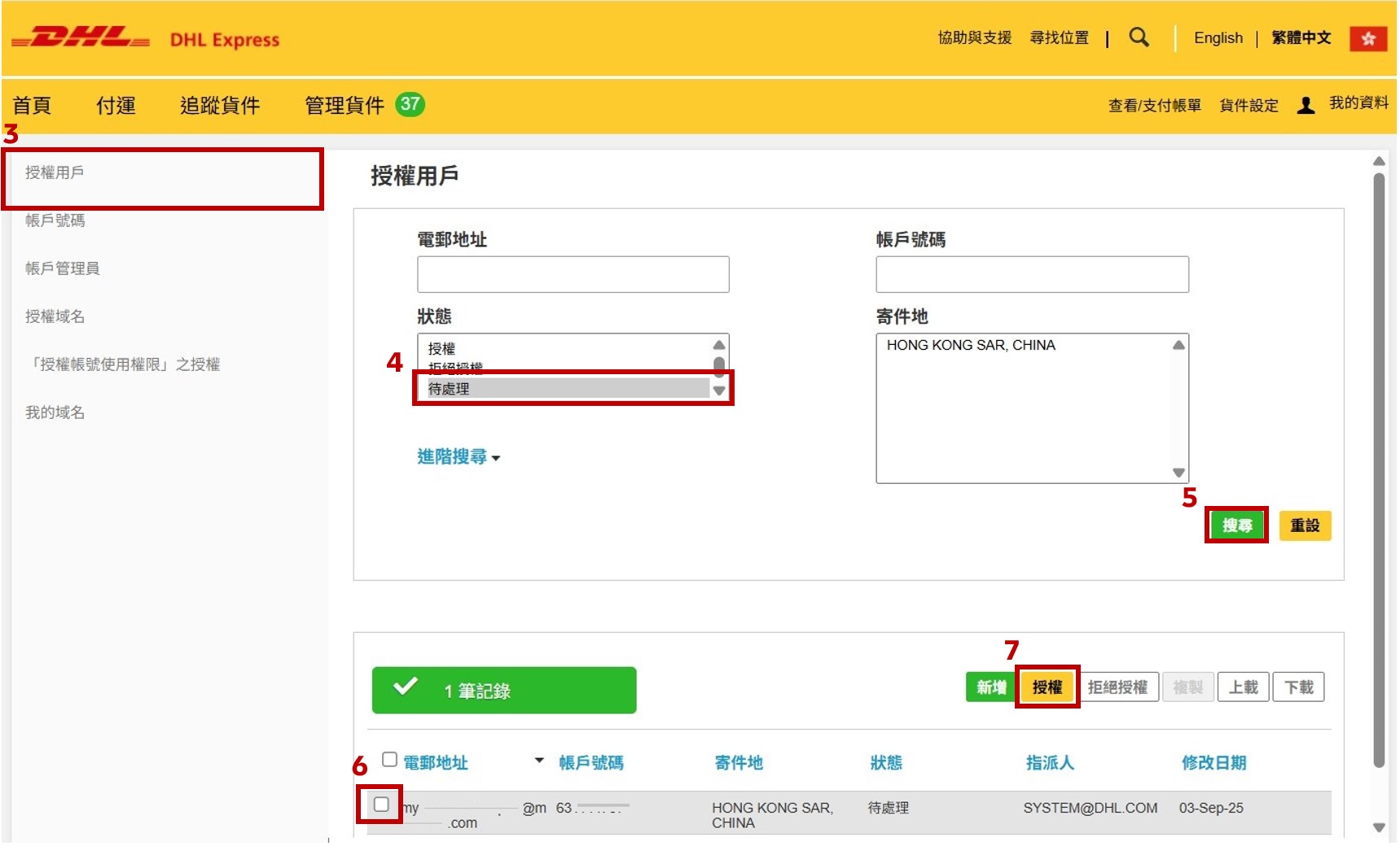 *如果兩個選項都未勾選,則需要通過登錄 MyDHL+ 進行授權。