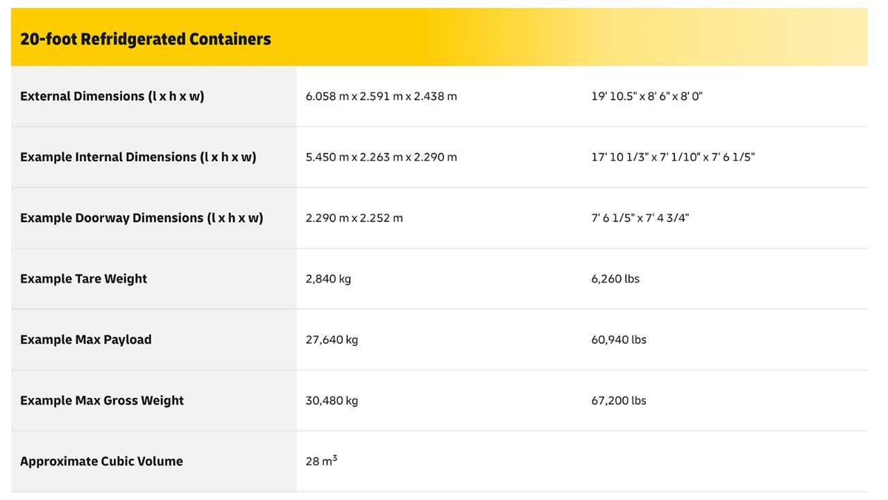 Dimensioner på 20-fods og 40-fods kølecontainere