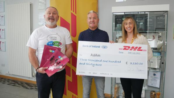 Representatives from DHL Global Forwarding Ireland presented a cheque to the value of €3,130 to AsIAm, Ireland's National Autism Charity.