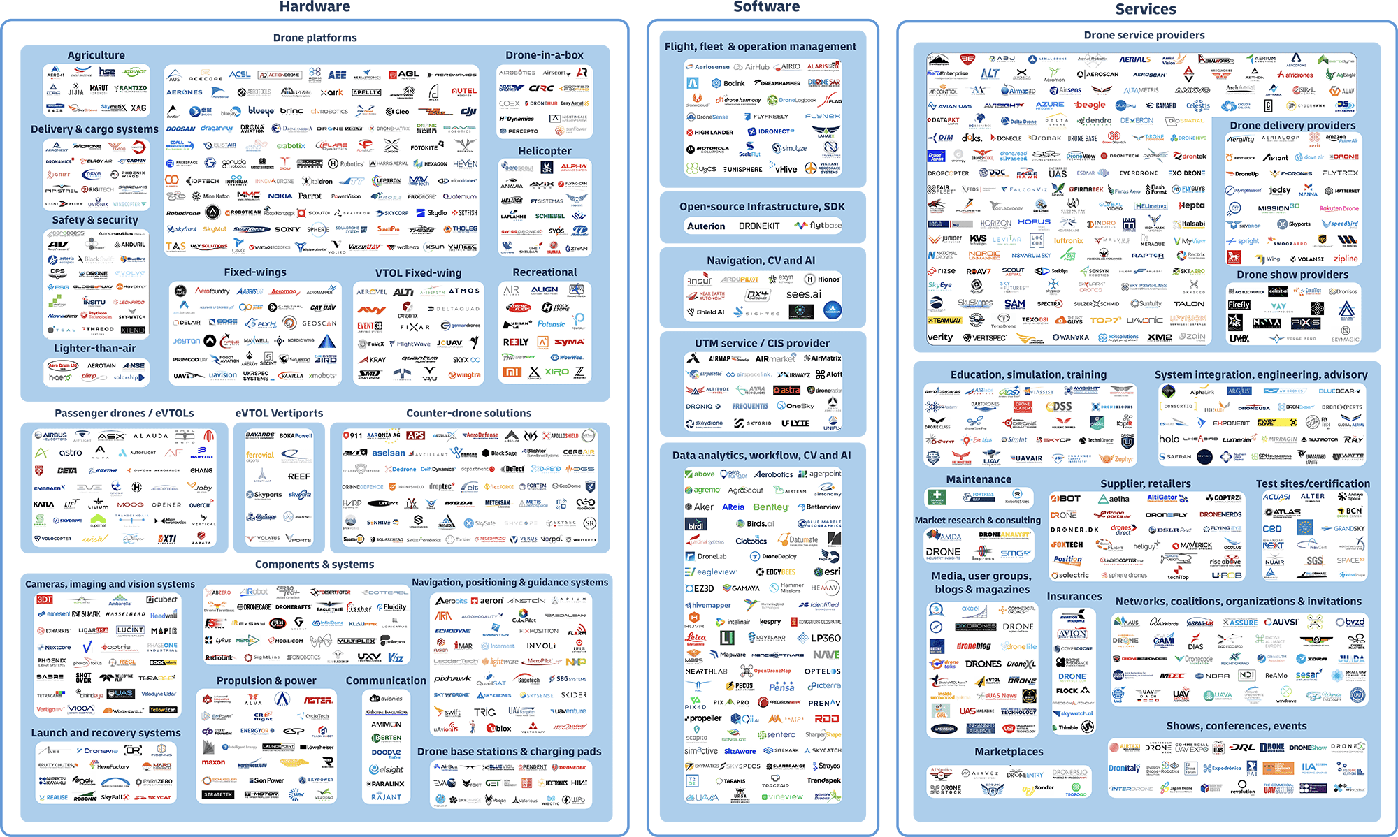 Drones come in a variety of sizes and form factors; examples include single-rotor helicopters and multi-rotor, fixed-wing, and fixed-wing hybrid vertical take-off and landing (VTOL) drones. Drones can carry out a variety of tasks, ranging from delivering packages to supporting operations, enhancing security, and enabling inventory counting.